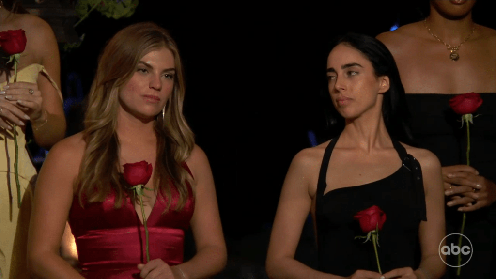 At the final Rose Ceremony of the week, Maria, Rachel, and Kelsey A. were all safe with date roses. Only seven more roses would be given out, so two women would be sent home.