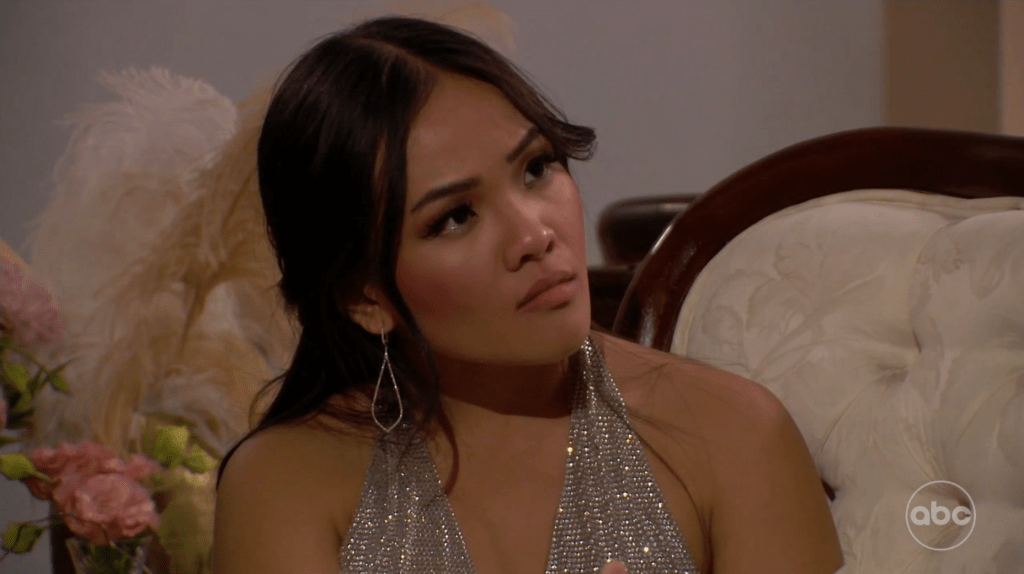 We cringed the hardest when the men took it too seriously, like when Sam M. whispered in Jenn’s ear that he wasn’t going to keep things “PG”.